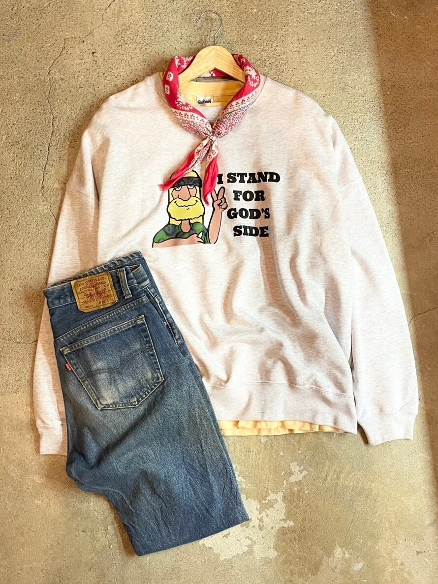 「I stand for God's side」ロゴ入りスウェットトレーナー。