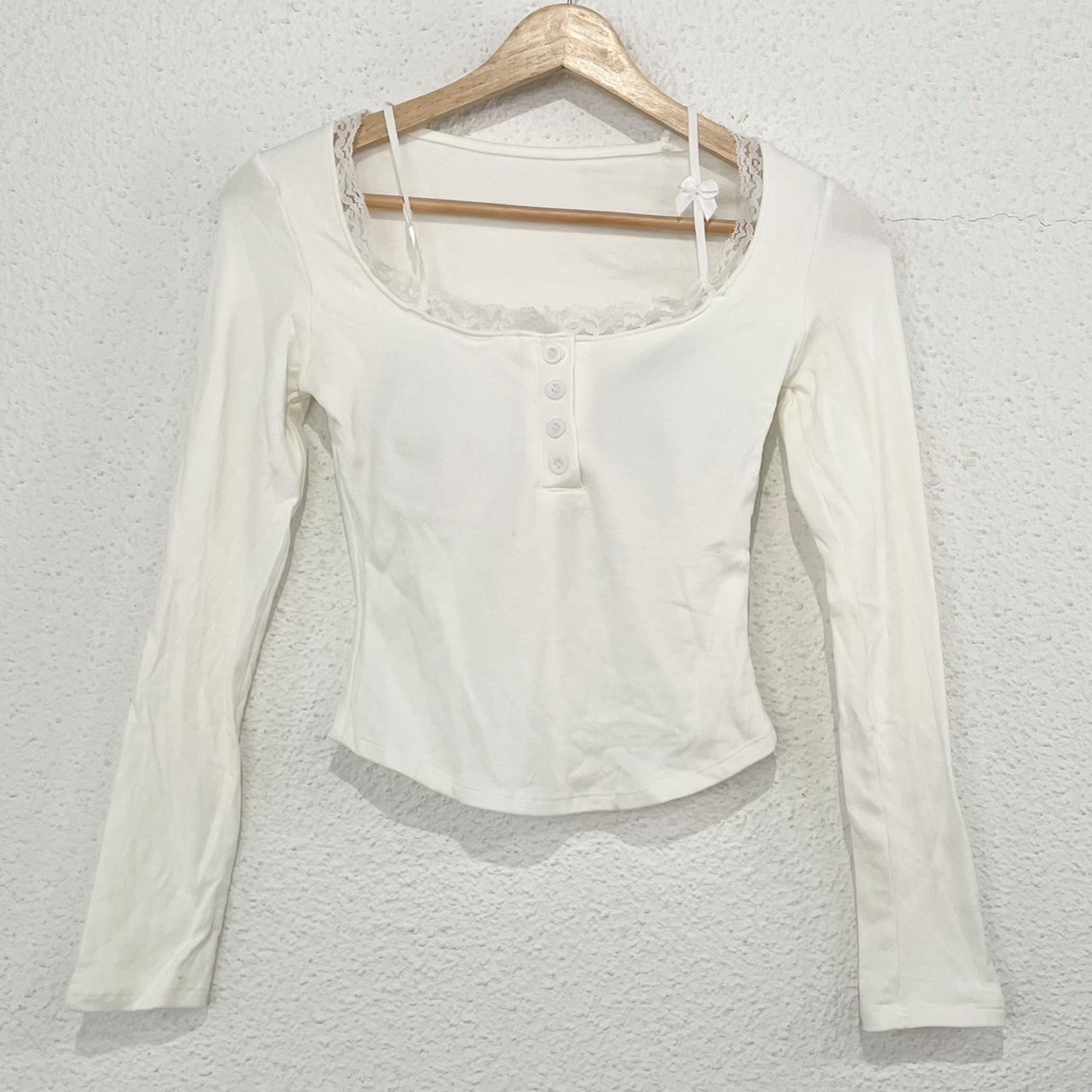 (平置き採寸です。かなり伸縮性のある柔らかい肌触りのシャツです。)